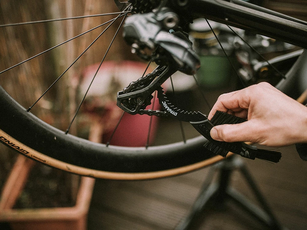 La Claw Brush de Dynamic permet d’enlever aussi bien les grosses que les fines saletés du pignon, de la cassette ou des plateaux. Elle est donc parfaite pour une utilisation directement après le vélo sur le terrain. La griffe élimine d’abord la boue, puis les poils et les brosses en nylon se chargent du travail de précision. Ainsi, la transmission du vélo n’est pas seulement propre, elle est aussi performante et dure plus longtemps.