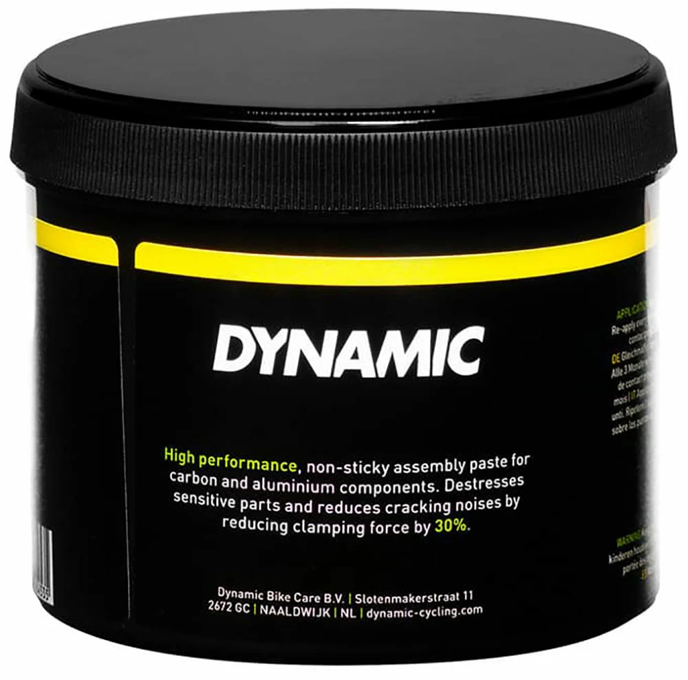 La pâte de montage Dynamic Carbon a un effet fortement inhibiteur sans pour autant avoir un effet collant. Cet effet est dû entre autres à l’ajout de microparticules. Grâce à l’utilisation de cette pâte de montage, les composants en carbone sensibles sont moins sollicités et les bruits de craquement gênants sont réduits. La pâte de montage offre en outre une protection élevée contre la formation de rouille et est fortement hydrofuge. Ces avantages imbattables de la pâte de montage Dynamic Carbon sont décisifs pour différentes équipes professionnelles qui utilisent cette pâte de montage au quotidien.