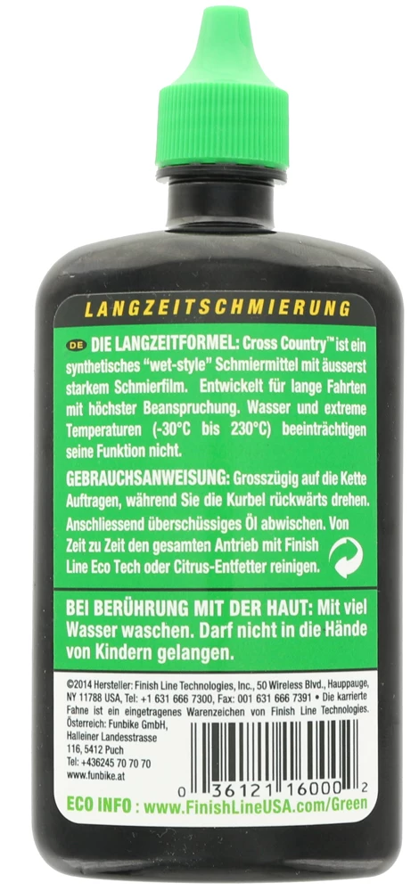 L’huile de chaîne Finish Line Cross Country est une huile synthétique très efficace qui a été spécialement développée pour être utilisée sur les bicyclettes. Même en cas d’utilisation intensive, il prolonge sensiblement les intervalles d’entretien. Cela rend ce best-seller de Finish Line presque indispensable, surtout par temps humide.