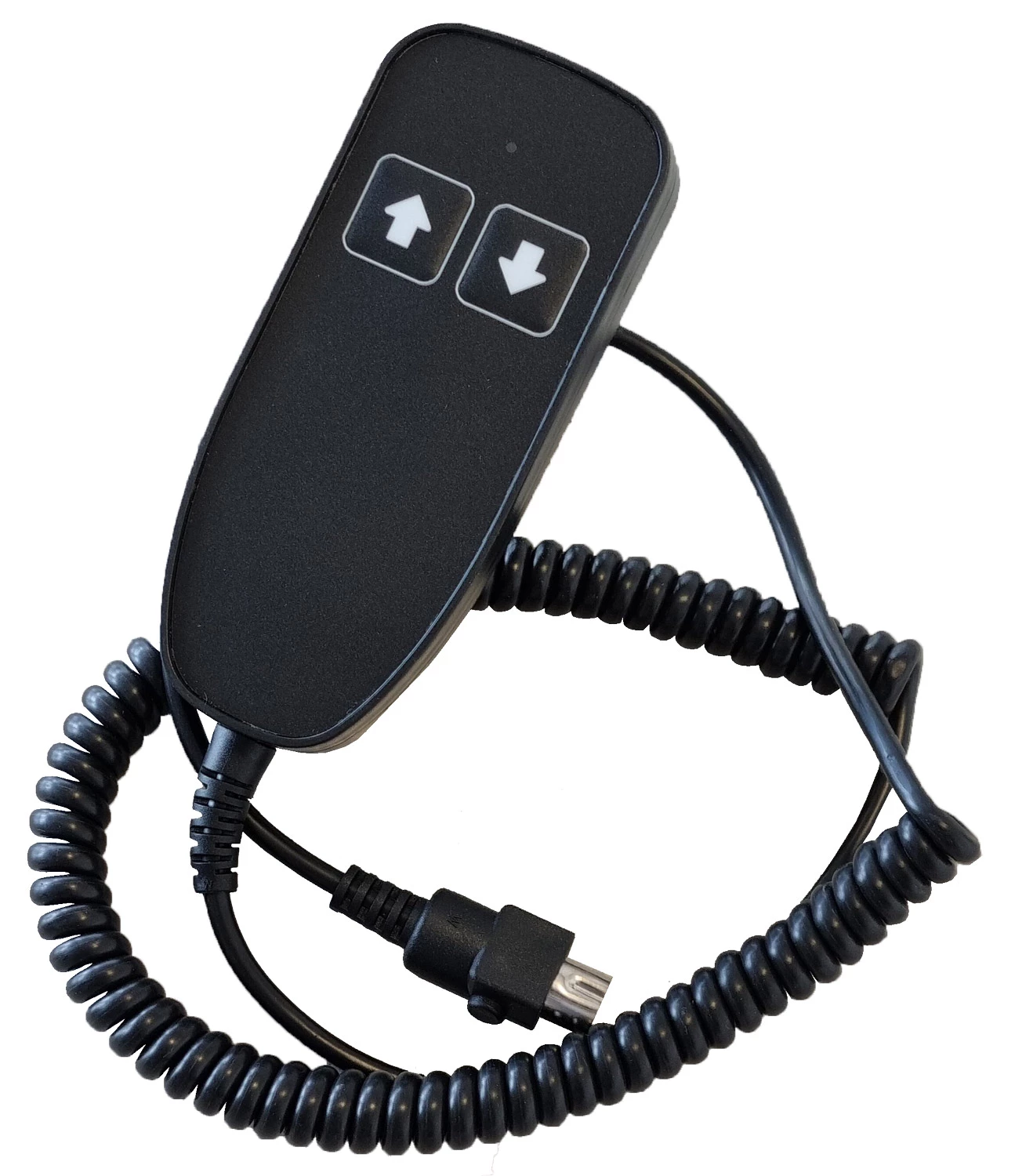 La télécommande Nuton pratique avec une longueur de câble généreuse de 1,5 m à 2,8 m pour le pied de montage électrique. Commande manuelle par bouton-poussoir de montée/descente et avec languette d’accrochage.