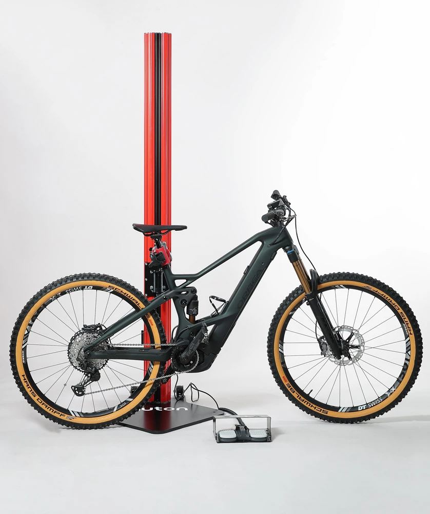 Pour que tu ne te casses pas le pied sur ton vélo lors de l’entretien et des réparations, Nuton-Bike a développé un support de montage électrique pour des charges de levage jusqu’à 40 kg.