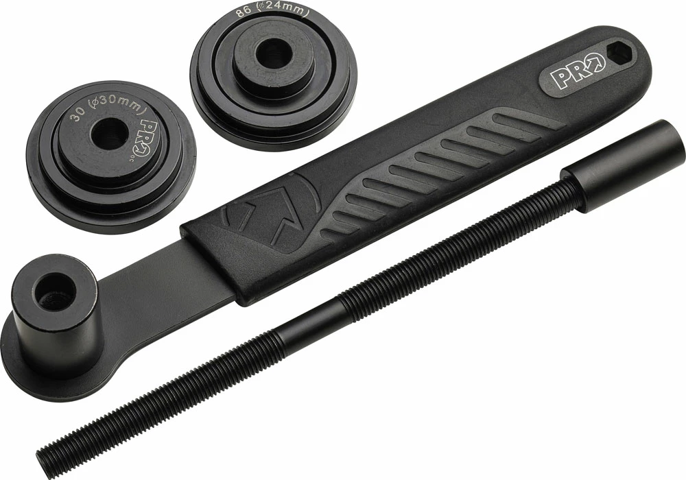 Outil d’emmanchement PRO en acier à outils robuste pour les cuvettes de pédalier convenant aux axes de 24 et 30 mm.