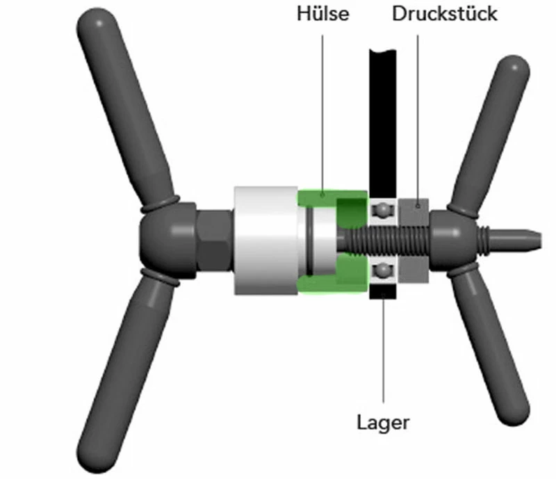 Pour le démontage/montage d’un roulement, l’outil de base #8069 est toujours nécessaire. En outre, l’outil de presse peut être converti avec les adaptateurs suivants pour les dimensions de roulement indiquées.