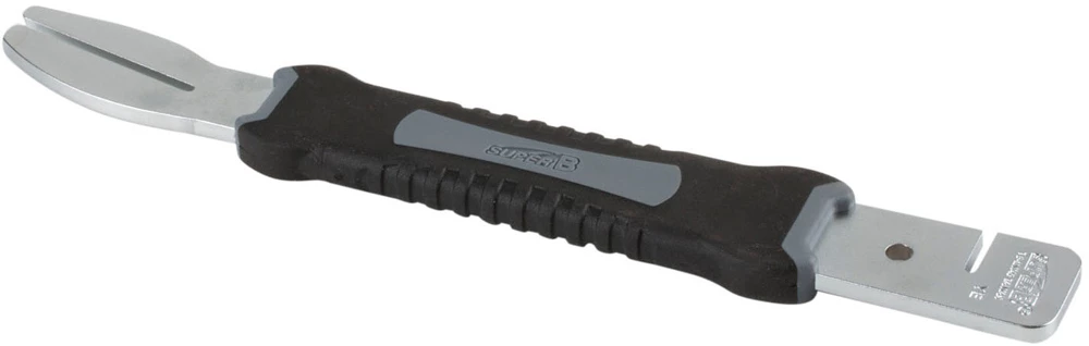 Le TB-MW40 de SuperB est l’outil idéal pour redresser en douceur les disques de frein tordus ou endommagés. Avec ses deux encoches de différentes longueurs et son revêtement antidérapant agréable à saisir, cet outil de redressement offre tout ce qu’il faut pour redresser les disques de frein en toute fiabilité.
