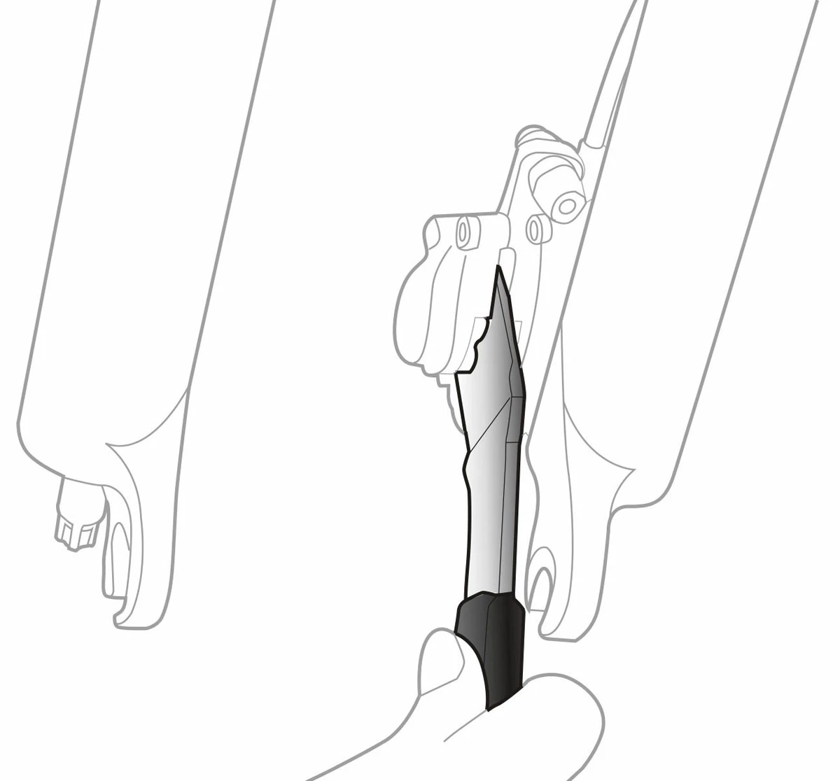 Outil en acier trempé permettant de repousser les pistons de frein sur les systèmes de freinage hydrauliques.